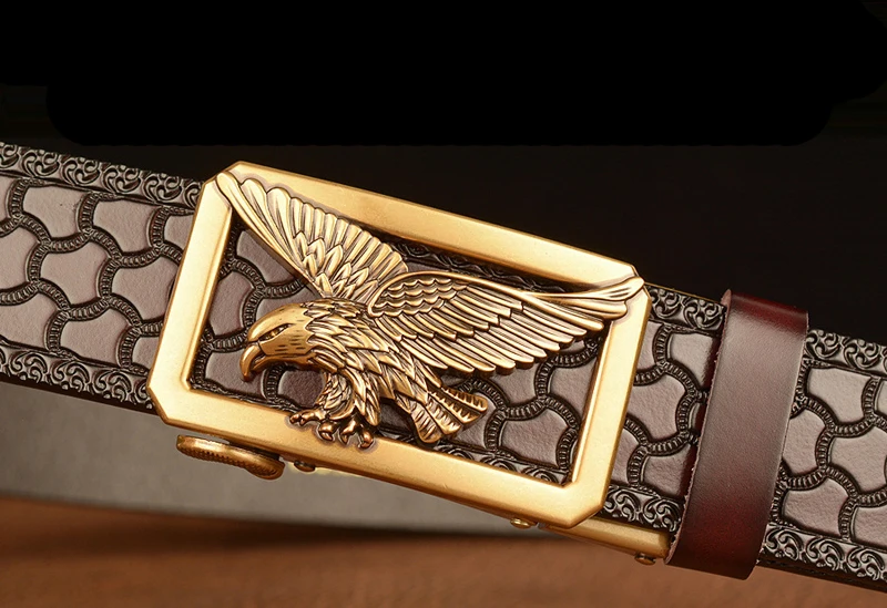 3.5cm eagle pattern automatic buckle belt for men high quality genuine leather belt strap male business waistbandAutomatic Buckle Ratchet Belt for Men, Genuine Leather Belt Size 27-to-42 Inch