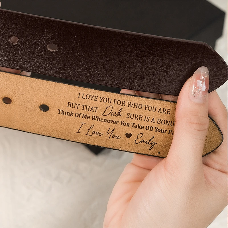 Personalized Men’s Leather Belt – Custom Engraved Cowhide Belt with Any Text Handmade Anniversary & Groomsmen Gift (Size 25-56 Inch)
