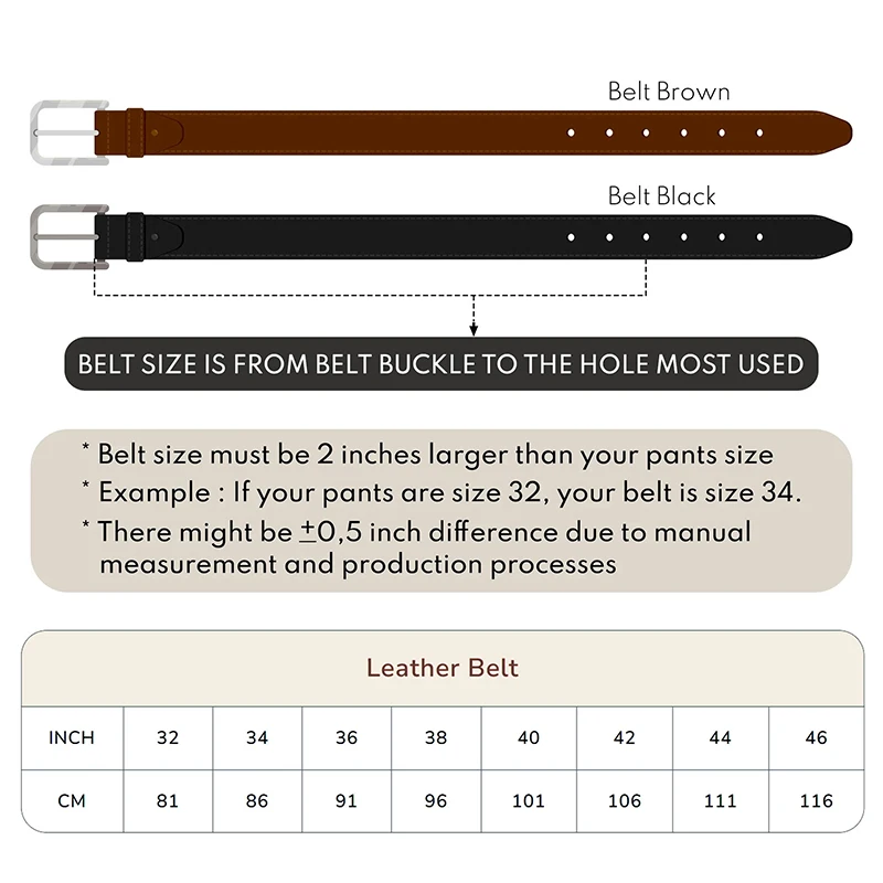 Belt Size Guide for MenPersonalized Men’s Leather Belt – Custom Engraved Cowhide Belt with Any Text Handmade Anniversary & Groomsmen Gift (Size 25-56 Inch)